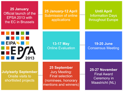 Desde 2007, y cada dos años, EIPA organiza los European Public Sector Award (EPSA) una plataforma de excelencia pública que premia y da a conocer experiencias valiosas en las administraciones públicas europeas, centrándose en el conocimiento y difusión de buenas prácticas. Pretende crear un espacio en el que las instituciones del sector público de Europa pueden sobresalir y convertirse en un ejemplo para el resto del mundo. En este contexto, EPSA pretende alcanzar los siguientes objetivos:
